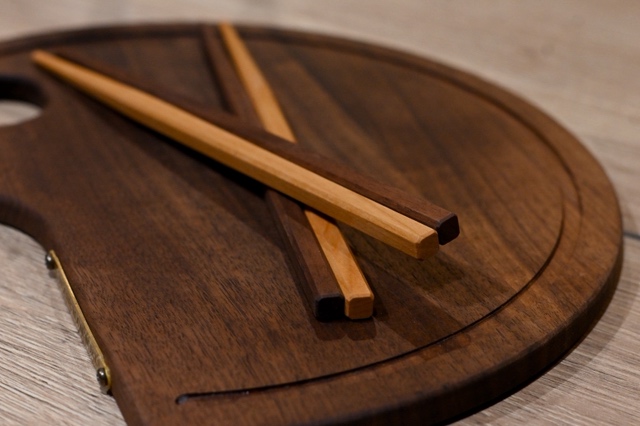 ■ウォルナットと真鍮プレートをあしらった半円アシンメトリーのまな板