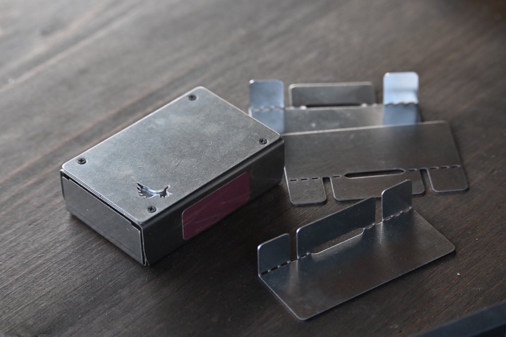 2種の着火具を分けて入れる為、仕切り板が付属。 スライド出来る仕切り、固定仕切りなど、自身で曲げてお好みに合わせて使えます。